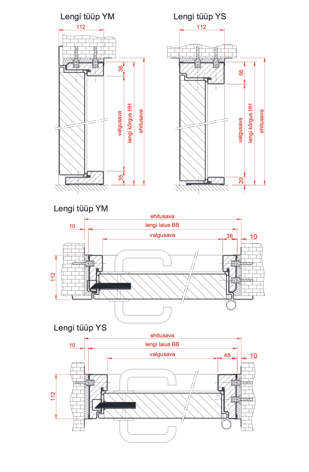 katteliistuta (tüüp YS) lahendusega. Lengile on kinnitatud paisuv tihend 2x20 mm ja soonde kinnituv silikoontihend.